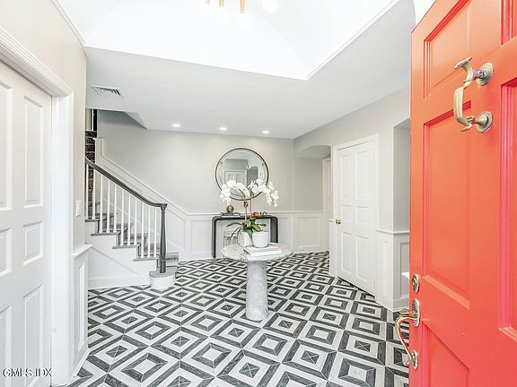New updates in '21 include kitchen, mud room, mechanicals, lighting, glam room and décor/baths. Home has been converted to gas and has a new boiler and hot water heater. Privacy and comfort abound in this turn-key luxe retreat located within minutes of downtown Greenwich! This artful 5 BR/4.5 BA home has undergone an extensive renovation that marries a modern comfortable approach to classic Greenwich traditional. The flow of the house has been transformed and rebalanced to produce a refined yet casual experience. The open eat-in-kitchen features custom cabinets and hardware, new white stone counters, a 6 burner Bertazzoni range/oven and marble waterfall island. The adjoining family room with black granite fireplace and wet bar is connected by large glass doors to the chic living room