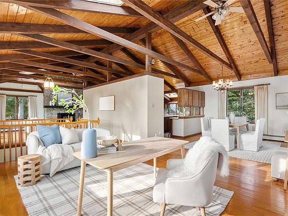 Welcome to 40 Penny Pond Road, a rare coastal retreat just a stone’s throw from the Sakonnet River with private deeded beach and mooring access. Offered for the first time, this custom built home has been lovingly cared for by its original owners for more than 50 years. Designed with craftsmanship and intention, it pairs timeless character with a layout that maximizes light and space. The main level of the home opens into a dramatic vaulted living space with exposed beams, wood ceilings, skylights, & expansive windows that flood the interior w/ natural light. The open floor plan seamlessly connects the living, dining, & kitchen areas, anchored by a striking stone fireplace. Sliding glass doors extend the space to an inviting enclosed nook overlooking the charming sunroom below, while a convenient half bath completes this level.The lower level features the primary suite w/ a full bath, as well as 2 additional bedrooms & a 2nd full bath. Just off this wing is a cozy sitting area with a wood burning stove that opens to a sunroom lined with floor to ceiling windows and sliding glass doors leading directly to the deck, the perfect space for relaxing or entertaining. The basement level includes a 2 car integral garage w/ additional storage. Beyond the home itself, this expansive property offers a true coastal lifestyle with not only beach & mooring access, but also dedicated kayak racks. 40 Penny Pond Road is more than a house, it’s an opportunity to create your own coastal haven.