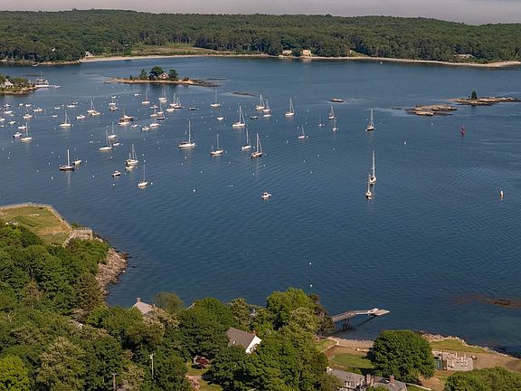 Welcome to Hook's Cove, a quintessential Maine setting with biophilic design and commanding panoramic views of outer Pepperrell Cove and the Atlantic Ocean. This private, waterfront property with substantial deepwater dock & boat mooring is rich in nautical history dating back to the 1600's and has been extensively renovated in 1995 & 1999. Guided by landmark lighthouses on its outer shores, the entrance to Hook's Cove is incredibly scenic and bustling with wildlife and maritime activity. Lush perennial landscaping, irrigation, and elegant rock and stone hardscapes surround the residence. Whether it be the calm sound of the waterfall trickling into the koi pond or the crackling fire in the exterior stone fireplace perched high above the shoreline, experience the captivating charm of this one-of-a-kind, waterside haven. Graciously entertain guests with an elevated oceanfront deck, lower patio leading to the verdant seaside lawn, drinks in the cozy bar room, the formal dining room with fireplace, or the open kitchen/living area with sensational vistas. Throughout the home, four ensuite-bedrooms offer privacy and comfort to all who stay. A detached 2-car garage with studio and ¾ bath above offers many possibilities.