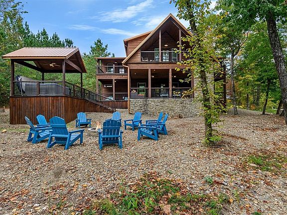 Three Rivers Cabin has been a very successful short term rental. From Nov. 2021 thru August 2023 this cabin has grossed $752,994. Post COVID, from Jan. 2022 through August 2023, it has grossed $276,070 for an average of $13,803 a month. Contact listing agent for rental history. As you walk in you will be greeted by the stunning, floor to ceiling rock fireplace that continues all the way to the second floor. The open living concept makes for easy entertaining. The Kitchen boasts sleek, granite counter tops, custom cabinetry and stainless steel appliances. This large cabin houses 5 King Suites, each with it’s own private bathroom with walk in tile showers, granite counter tops and stylish sinks. Upstairs you will find, two of the King Suites, an additional bedroom with a King bed a well as 2 sets of triple bunks and a Twin over Queen bunk. The loft area is the perfect place for hanging out, playing games, shooting pool or just kicking back and watching a little TV! Downstairs holds the other two king suites as well as an added half bath for convenience. The cabin also offers additional sleeping for 4 guests with 2 queen airbeds. Outdoors, Three Rivers Lodge features covered decks with an outdoor fireplace to sit around and enjoy conversation. Ready to melt away the stresses of the day? Relax in the hot tub before sitting around the firepit. This cabin also has a flowing creek nearby, creating beautiful natural music.