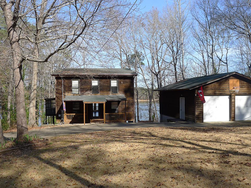 Cozy,comfy,private lake home in Sturdivant area.3BR,2ba w/large master suite+reading area in loft.2BRs/1ba on main level for guests.Open kitchen&bar/den/dining lead out to full-length lakeside porch w/screened area.Den has high vaulted ceiling.Finished partial basement is a great office or bunk room. New dock 2 yrs old has covered boathouse.HUGE detached 2-car garage is PERFECT for boat/RV/SeaDoo storage and would make a terrific workshop too! Another separate 2-car metal carport. Located in a tranquil area of Lake Martin known for good fishing and quiet living. Large 1.39-acre lot with circle driveway.