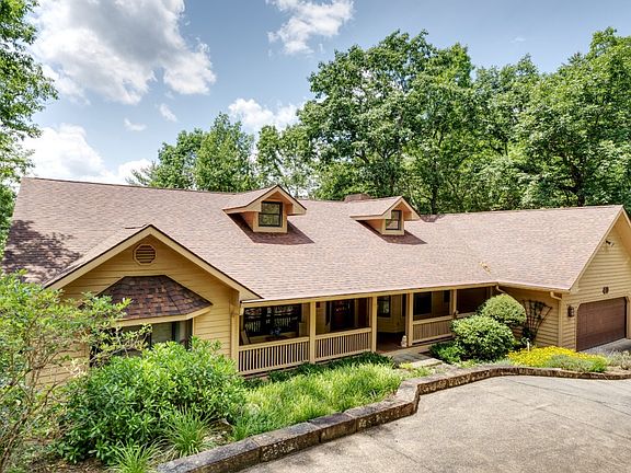You will love coming home to this attractive and comfortable place in the mountains. Beautiful gardens greet you as you pull in the circular drive and 2 car garage. Everything you need is on the main floor: large master suite, guest suite and office as well as great room, enclosed porch, laundry and hobby room. The spacious kitchen has an island, raised snack bar and a breakfast room with 2 Velux (C) auto shade skylights and is conveniently open to the great room (with a stone fireplace). Adjacent to this is an all weather, enclosed porch room with gas logs and expansive views. The dining room can seat ten comfortably. Downstairs is a big family room, bedroom and bath plus room for a workout room, pool table and more. The master bathroom tub is a Bubble Air bath. Furnished and move in ready.