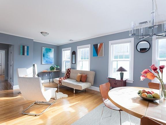 Close to Porter Square, the T, & Commuter Rail, with the size and amenities of a single-family house! Renovated and sunny 2nd & 3rd floor 4 bedroom, 2 bath duplex in handsome two-unit building. Separate entrance. Open plan with good-height ceilings. Hardwood floors. Large windows offer long views and a delightful sense of space. Gorgeous chef's kitchen. Stainless-steel appliances. Master suite with luxurious spa bath, built-ins, skylights, two closets. Space for home office. Two private decks and two-car off-street parking spaces! Central AC. Newer systems. Laundry in unit. Large lot provides opportunities for gardening, entertaining, play areas. Close to many independent shops and restaurants. Stay active and visit the local skating rink, parks and the public pool. Bike path through Davis to points west is nearby. Lots of private basement storage space. 100% owner occupied association has done an excellent job maintaining the building. Rare and beautiful offering. No showings Friday.