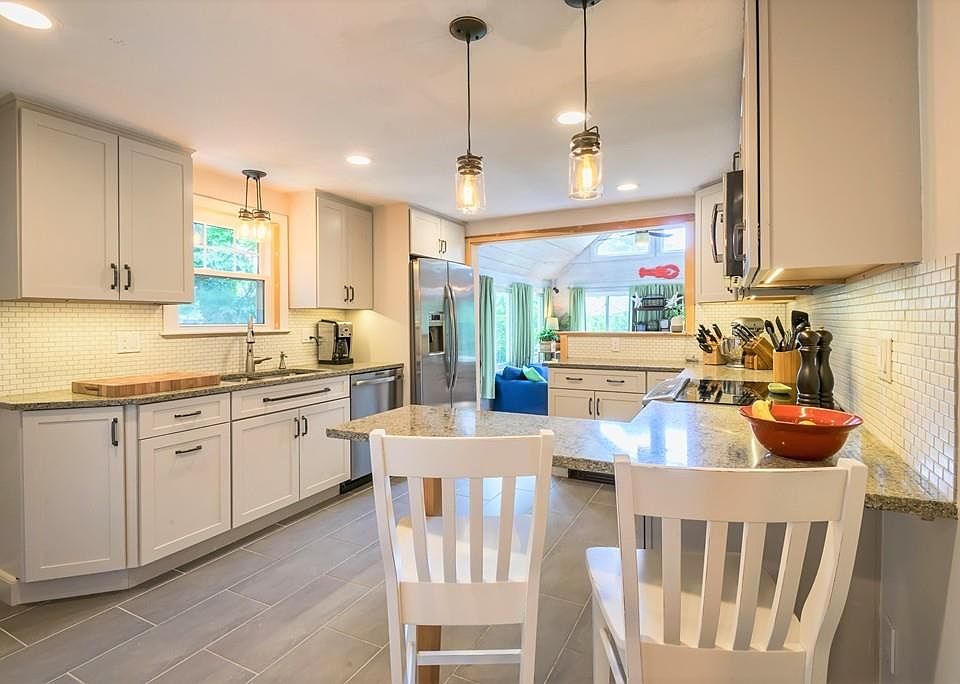 Newly renovated picture perfect Cape in Beverly's Montserrat/Cove neighborhood. This 4 bed 2 bath home features a gorgeous brand new kitchen with quartz countertops, induction range, stainless steel appliances & ceramic tile flooring. This space opens directly into a rustic, wood paneled, cathedral ceilinged "Mini Great Room". The main level also includes a generous sized living/dining room with southern yellow pine flooring & built in cabinetry as well as two bedrooms & a full bath. Upstairs, two good sized bedrooms & another full bath complete the second floor. All new insulated glass windows & shingle style vinyl siding. Full basement offers space for laundry, workshop, game area & storage or for future finished living space. Two car off-street parking & easily maintained private backyard. Close to Dane Street Beach, Lynch Park/Beaches. Easy walk to downtown Beverly, & the Beverly Depot OR Montserrat commuter rail T stations.