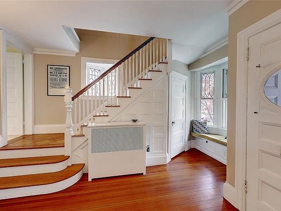 Fabulous south-facing 5-bedroom, 3.5 bath Colonial in highly desirable Wayland Sq/Freeman plat neighborhood. Large inviting front porch. Wonderful original details throughout, including oak floors, extensive millwork, and stained glass windows. New boiler, roof, and first floor windows & third floor skylights. First floor has large living room with gas fireplace, and spacious eat-in kitchen. Second floor has two bedrooms with a common bathroom, and master suite with bath. Third floor has two bedrooms and full bath with extra space that can be used as office. Private yard with deck and one car garage. Steps to Moses Brown, Wayland Square's cafes and shops, and local Universities. A very special home...