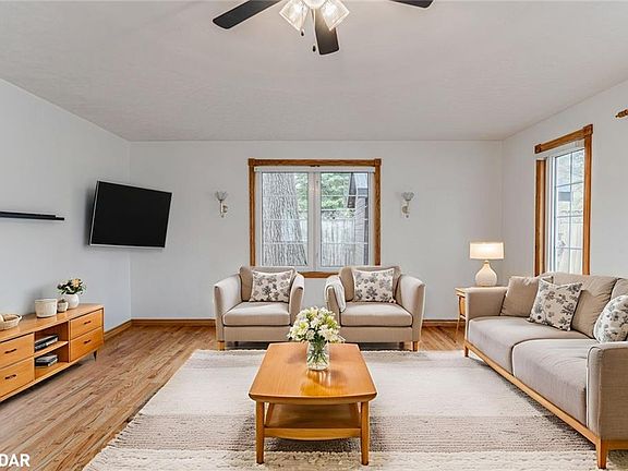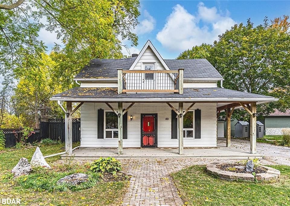CHARMING IN-TOWN CENTURY HOME ON AN EXPANSIVE 66 x 165 FT LOT WITH A DETACHED GARAGE, BARN & SPACIOUS INTERIOR! Tucked away at the quiet end of a no-exit street in Alliston, this spacious home is filled with character, flexibility, and incredible potential. Offering over 2,450 square feet above grade, including a 1,151 square foot addition that includes a partial basement below, there’s plenty of room for families or multi-generational living. The wraparound porch and upper-level walkout gable porch add charm and presence, complemented by an interlock walkway, mature trees, and a bold red front door. Inside, hardwood floors, exposed brick, and warm wood accents create a welcoming feel throughout. The kitchen opens to a bright dining area, while the large living room at the back of the home offers a walkout to the backyard deck plus a separate side entrance. Upstairs, the massive primary suite features an ensuite with a corner soaker tub and separate shower, along with a walk-in closet roughed in for a kitchenette. The upper level also includes a versatile loft with its own walkout, ideal for a home office, playroom, or additional living space. Downstairs, the basement hosts a rec room with a wet bar, ideal for movie nights or entertaining guests. A detached 444 square foot garage provides workshop space, while the 2-storey 308 square foot barn offers endless possibilities for hobbies, creative projects, or storage, each with its own independent electrical panel. Finished with a wood-fired cedar sauna and set in a peaceful in-town location close to parks, schools, shops, and Stevenson Memorial Hospital, this #HomeToStay invites you to bring your ideas and create something remarkable.