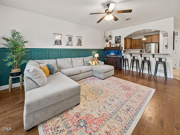 Must see Craftsman Style Home in the beautiful community of Hammock Bay. The first floor of the home features a charming living room space with a custom built electric fireplace and a beautiful accent wall, with a large bar connecting the kitchen to the living room, with plenty of room for bar stools to provide optional seating for mealtime; with the master bedroom directly off the dining space and a private half bath to provide bathrooms for guests. As you walk up the stairs to the second floor you will enter a large bonus space, perfect for a family room, game room or kids playroom, there are 3 additional bedrooms and 2 full bathrooms as well on the second floor. The floor plan is very spacious with a well thought out layout.
