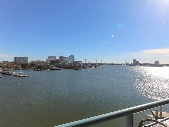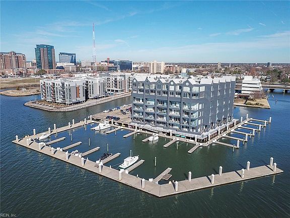 Penthouse condo with stunning waterviews of the Elizabeth River and the Norfolk skyline. This condo has an inviting foyer, and as you walk into the living room, you will be immediately drawn over to admire the waterviews. With two balconies, one on each floor, plus a private rooftop patio, you can enjoy the outdoors as the weather allows! This condo lives like a home, with first floor living and dining space for family and friends, plus three bedrooms and two full bathrooms upstairs. Kitchen has ample counter space, a walk-in pantry and an elegant built-in China cabinet/serving area. Lots of built-ins for books, artwork, etc. TV will convey, tagged fixtures will not. Assigned storage, plus assigned parking for two cars, off street. Bike storage, kayak racks, SUP boards, bring your toys! Boat slips are available, but not included.