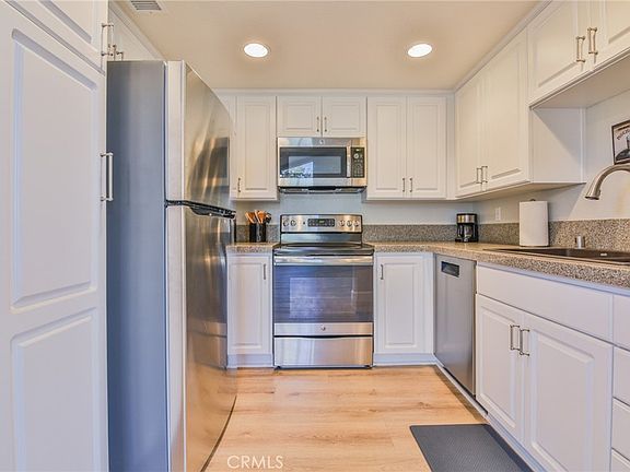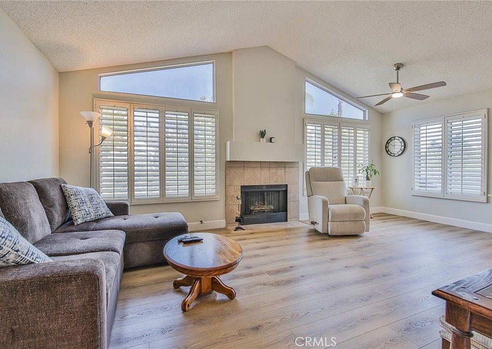 Welcome to this well-maintained upper-level corner-unit condo in the desirable Glenwood Village community of Aliso Viejo. This thoughtfully designed, diligently maintained, and beautifully updated home features 1 bedroom plus a den/office—perfect for working from home and easily convertible into a second bedroom. Recent updates include beautiful Luxury Vinyl Plank (LVP) flooring, a new AC and furnace (2020), Granite Transformations countertops in the kitchen, an updated bathroom, and new R-38 rated attic insulation with a radiant barrier and attic fan to help reduce heating and cooling costs. The unit includes its own private balcony/sitting area with private staircase access. The versatile den/office includes its own sliding door entrance. The dining area and spacious family room feature vaulted ceilings with high accent windows that bring in exceptional natural light, along with a cozy gas fireplace. The combination of soaring ceilings, tall windows, and plantation shutters creates a bright, inviting living space throughout the day. Clean LVP flooring and recessed lighting add a modern touch. The updated kitchen includes stainless steel appliances, Granite Transformations countertops, ample cabinet space, and an efficient layout. Refrigerator is included. Down the hall to the primary bedroom is a separate in-unit laundry area (washer and dryer included) and a full bathroom. The primary bedroom features vaulted ceilings, additional high windows that provide abundant natural light, and a walk-in closet. Surrounded by lush trees, green common areas, parks, and natural open space, this home offers a peaceful setting while still being close to everything. Enjoy quick access to shopping, dining, recreation, and some of Orange County’s best outdoor lifestyle amenities. You’re just a quiet 15-minute drive to Downtown Laguna Beach, 10 minutes to premier hiking and mountain biking trails, and 15 minutes to John Wayne Airport or Newport Beach. Aliso Viejo is also consistently ranked as one of California’s safest cities, making it a truly exceptional place to call home.
