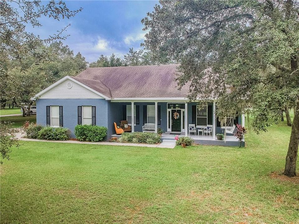 Looking for a stunning home with acreage?? Look no further!!!!This beautiful home sits on 5.04 acres in a quiet country setting in the heart of Central Florida! With an unmatched location for folks looking for privacy and peace of mind, this property has quick access to HWY 27 which can connect you with I4 and all Central Florida has to offer. The home itself, features a wonderfully designed 1942 sq ft of living area, with a functional split & open plan, high ceilings, lots of windows, large screened back lanai and much more. The home opens to a spacious foyer, a den/office to the left, wide open living/family room with great views of the wooded area behind the home. The kitchen has stainless-steel appliances, wine refrigerator, and plenty of cabinet storage. The living/family room has a beautiful fireplace, ceiling fan, with French doors leading out to the screened lanai. The master bedroom & bathroom will give you the peace and relaxation you're looking for. There is tile throughout the vast majority of the home. The large screened lanai as well as open front porch will give you stunning old Florida views. In the backyard you will find plenty of oak trees and room to run around. Also, there is a nice size pole barn that has plenty of storage for all your equipment, tractors, toys/boats/atv's and built in dog pens with electricity. Contact us TODAY for your private showing!!!
