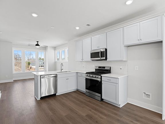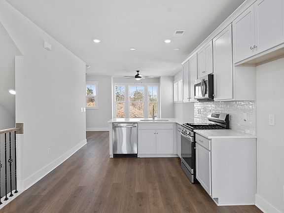 Welcome to Renaissance Place, Greenville's newest townhome community. These thoughtfully crafted, modern-Craftsman style homes combine sleek lines and designer finishes, offering both style and functionality. The Walker plan features a spacious three-story layout. The first level includes a garage, a bedroom, and a full bath. On the second floor, you'll find an inviting living room, kitchen, and dining area, with a door leading out to a balcony perfect for enjoying the sunshine. The third floor boasts two primary bedrooms with ensuite bathrooms. Located less than 10 minutes from downtown Greenville, this community provides convenient access to major employers, Greenville County Schools, and the vibrant downtown area, ensuring everything you need is just moments away.