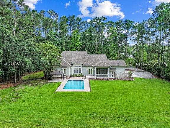 40 Rose Dhu Creek Plantation offers private luxury living on almost 2.5 acres in a Bluffton premier location! This exclusive estate combines space, privacy, and refined comfort with everyday practicality. The residence features 5 bedrooms, 3 full baths, and a versatile media/flex room, all served by a thoughtful, open floor plan. A 3-car garage provides abundant storage and vehicle space. Step outside to enjoy the saltwater pool with a fast lane swim system and the serene outdoor living environment, screened porch is perfect for entertaining or quiet family moments. Residents also enjoy access to a community pool and pavilion just minutes away, enhancing the sense of community while preserving your private retreat. With easy access to Old Town Bluffton, you are never far from boutique shops, dining, and cultural events, yet you will feel a world away at home. This home is ideal for refined entertaining, flexible living arrangements, and those who value privacy without sacrificing convenience.