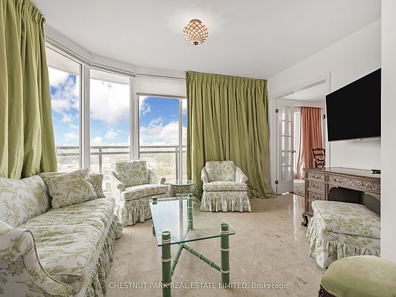 Downsizers seeking luxurious space will be captivated by this rare 4-bedroom, 3,206 sq.ft. south west corner penthouse. With thoughtfully designed, truly oversize rooms, this residence cocoons you in comfort and style. Ideal for entertaining, this penthouse features expansive walls of windows with sweeping skyline views, an indoor/outdoor "Muskoka" Room, and wrap around slimline balconies with transparent glass and sliding doors for uninterrupted vistas and fresh air. The home offers tall ceilings, a gracious dining room for 12, wood-burning fireplace, family room/solarium, fantastic eat-in kitchen, wet bar, large ensuite laundry room with sink, abundant storage, three parking spaces, and 2 concrete walled, entirely private locker rooms with steel fire doors (approx 10'x10' or 10'x 12' each). The building's windows were replaced and the elevator refurbished in 2019. A focus for suites of this size in the vibrant Yonge/St. Clair hub, this prestigious midrise boutique building is steps from the subway and surrounded by superb amenities: David Balfour Reservoir Park for dog walking, Rosedale Ravine walking trails, boutique shops, top dining, Loblaws, and Farm Boy. Refined, sophisticated, and uniquely spacious, this home offers exceptional scale and comfort - urban living at its most polished! Virtually staged "new look" photos showcase the alternative contemporary elegance options available to you. This is matchless value at the intersection of Summerhill, Deer Park and Moore Park! Excellent area amenities including indoor pool in condo.