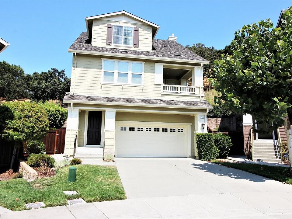 Elegant situated Belle Terre house on a private hillside lot. Spacious kitchen with stainless steel appliances. Beautiful living room/dinning area with fireplace and high ceilings, new floors and newly painted. 3 bedrooms with 3 full bathrooms ( each bedroom has its own bathroom )Brand new carpet through out the bedrooms and stairs, beautiful view from balcony in main level. large 2 car garage, beautiful patio area and serene views of southern Marin hills. Alarmed with ADT security system,( tenant can activate at their own cost) We accept small dog landscaping included.