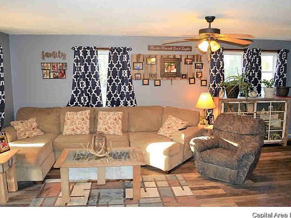 Super Cute Starter home on 1 acre lot in small town. Two car heated and cooled garage with workshop room! Large living room with new flooring. Nice size main bedroom. Eat in kitchen that steps out to deck. Home has many nice updates including HVAC in 2015, and roof in 2012. Covered front porch. Address is 302 S Walnut St, Scottville, IL 62667. Mailing address is RR1 Box 40 Modesto Il