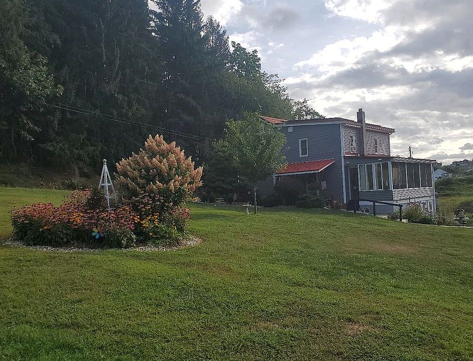 Screened porch, large deck with hot tub, vegetable, herb and flower gardens. Fire pit. Large, paved driveway. Flowering trees. Mountain views.