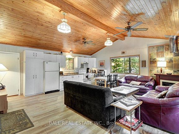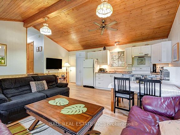 40 South Jordan Lake Road - Turnkey Waterfront Cottage with 101 feet of clean shoreline - 13 feet deep off the end of the dock.  Tucked back in a quiet bay, this fully furnished cottage offers the perfect blend of comfort, privacy and value.  The open concept living area showcases stunning tongue and groove vaulted ceilings, expansive windows, and lake views that fill the space with natural light.  The inviting layout is ideal for entertaining or relaxing with family, and comes move-in ready with all appliances and most furnishings included.  With two bedrooms and a spacious four-piece bathroom featuring a Jacuzzi tub and multi-jet shower, this cottage provides all the essentials for lakeside fun!  Main floor laundry adds convenience - large laundry space could convert to a third bedroom, while a drilled well, full septic system, cell service, and high-speed internet ensure you enjoy modern comforts in a peaceful setting.  Step outside to the front deck area and a large level front yard leading to the stone path walkway down to the dock - perfect for swimming, boating, or simply soaking in the sun and the view.  The property's mature trees offer excellent privacy, while the township maintained road ensure easy, four season access.  Currently heated with plug-in electric units, this cottage can easily be converted to four season - just insulate the floors and install a heating system to enjoy year round use.  Offered at a fantastic price, this is an exceptional opportunity to get into the waterfront market and start making memories by the May long weekend.  New water heater in 2025.  Shingles were replaced in 2020, and the septic was pumped in 2021.  Available for immediate possession!