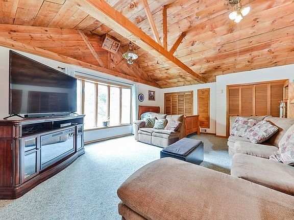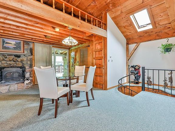 Offer accepted...Open House cancelled! Country feel and charm! This Gambrel, loft style, single family home is one of a kind. Barn board, vaulted ceilings, with wooden beams, opens to dining space with stone fireplace. Slider off dining area steps into a spacious 3 season room that overlooks a beautiful fenced-in, level, backyard. Adorable galley kitchen with picture window and bar stool breakfast island looks into dining area. Full bath on this level. Lofted bed space above the dining area. Tons of closet space and built-ins throughout. Built-in wall a/c. Spiral staircase into lower, walk-out level with a 2nd bedroom, walk in closet, half bath with laundry, and space for future shower stall. Roof is about 3 years old. Hot water tank is less than a year old. Furnace is about 6-7 years old. Front exterior needs a fresh coat of paint, rest of house is vinyl siding. 1 garage space under and plenty of off street parking. Commuter friendly location with nearby highway access.