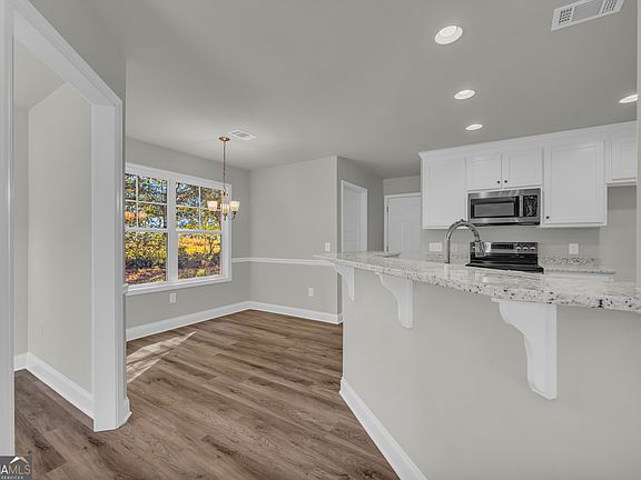 This brand-new home offers modern comfort with classic style in all the right ways. The open floor plan features soft, neutral tones throughout, giving you the perfect canvas to add your own personal touch. The heart of the home is the spacious living room with a cozy brick wood-burning fireplace. It flows seamlessly into the kitchen and dining areas, making it great for both entertaining friends and relaxing with family. The kitchen really shines with granite countertops, stainless steel appliances, and plenty of counter and cabinet space. It also has lots of room for guests with a breakfast nook, dining area and room for stools at the bar. Right off the kitchen, there's a full laundry room and easy access to the two-car garage. The main floor has three bedrooms, including a peaceful primary suite with elegant tray ceilings, a walk-in closet, and a luxurious bathroom featuring double sinks, a soaking tub, and a separate shower. There's also a sunny bonus room with lots of windows. It'd make a perfect home office, reading spot, or sunroom. Head upstairs and you'll find a generous bonus room with its own full bathroom. Use it as a fourth bedroom, media room, guest suite, whatever works for you. Outside, the home features a concrete driveway and walkway, fresh sod, and professionally done landscaping. And the location can't be beat. Just minutes from I-85, giving access to Anderson, Commerce, and Atlanta for an easy commute or weekend adventure. Come take a look and see if this Franklin County gem is the one you've been waiting for! Seller offers a one year home warranty and $5,000 toward Buyer's closing costs.