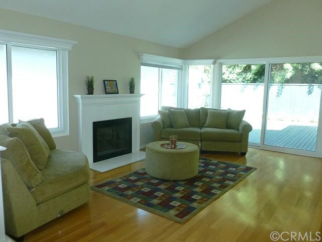 Rare one story bright and airy 3 bedroom home in wonderful Woodbridge! Gorgeous hardwood floors throughout most of the house, gleaming granite counters, freshly painted white cabinets, almost new stainless appliances, crown molding, vaulted ceiling, fireplace, fresh two tone paint, updated bathrooms, great private patio off front bedroom, replaced vinyl windows, tile roof, huge re-stained deck, long driveway, 2 car garage with roll up door and spacious, super private back yard. So many special features at an affordable price! Single level living at its finest; totally move-in ready and the lowest priced 3 BR SFR in Woodbridge. Convenient location right around the corner from neighborhood pool, park and playground and 2 blocks from the north lake. Woodbridge homeowners enjoy the use of 2 lakes, 20+ pools, tennis courts, parks and playgrounds and LOW dues of only $82 per month! No mello roos and excellent, top rated Irvine schools, of course!