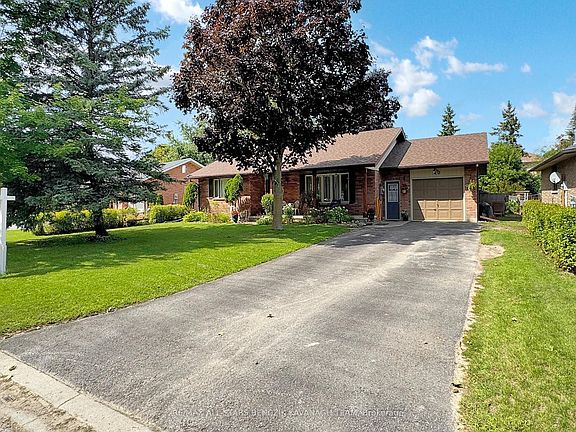 Charming 3+1 bedroom bungalow set on a generous 72' wide lot, perfectly situated on a quiet court with convenient ground-level access and located in the quaint Town of Sunderland. The spacious living room, with its sun-filled window, crown moulding, and pot lights, flows seamlessly into the dining room where the walls have been opened up to create a large eat-in kitchen featuring hardwood flooring, cabinet pull-outs, and a walkout to the deck for effortless indoor-outdoor living. The main level also includes a convenient laundry area with garage access, an expansive primary bedroom with a private 2-piece ensuite, two additional bedrooms, and a well-appointed 4-piece bath. The lower level extends the living space with a recreation area, a fourth bedroom, a 4-piece bath with jetted tub, and ample storage. Outdoors, enjoy a sun-drenched backyard with a spacious deck, lower patio with hot tub, vibrant floral beds, and a vegetable garden. Ideally located steps from local parks, Sunderland Public School, Health Centre, Main Street shops and amenities, and within walking distance to the sports complex, this home offers the charm of country living with easy access to fresh, locally grown produce.