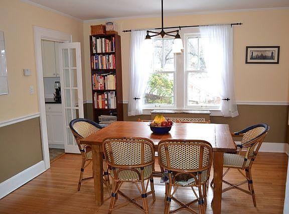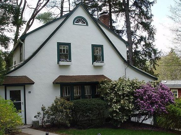 Storybook Charm. Arched doorways, white oak floors and working fireplace complete this light filled Tudor. Updates include: granite countertops, new range and microwave in kitchen plus new screened porch. Private, professionally landscaped with newly-pointed stone walls and abundance of perennials. Close to town, train and shops. A true gem!