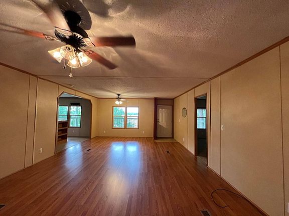 Affordable waterfront on San Miguel area of Toledo Bend Lake. This 2006 Model Manufactured Home has had updates and is move in ready. Large open living room with great views of the waterfront. If you have to do dishes, at least you can soak up the view from the kitchen as well. The primary bedroom has an adjoining bathroom with soaking tub, walk-in shower and large walk-in closet. There are an additional 2 bedrooms and 1 bathroom. Within this approximately 1680 square feet, this property would make a great primary lake home or a second home away from home. Sloping to the shoreline, there is no need for a seawall, just stroll down and fish! There is plenty of room for improvements on this 0.61 acre +/- waterfront lot. The large back covered back deck is where you'll spend your mornings and evenings soaking up the views and breeze from this property.
