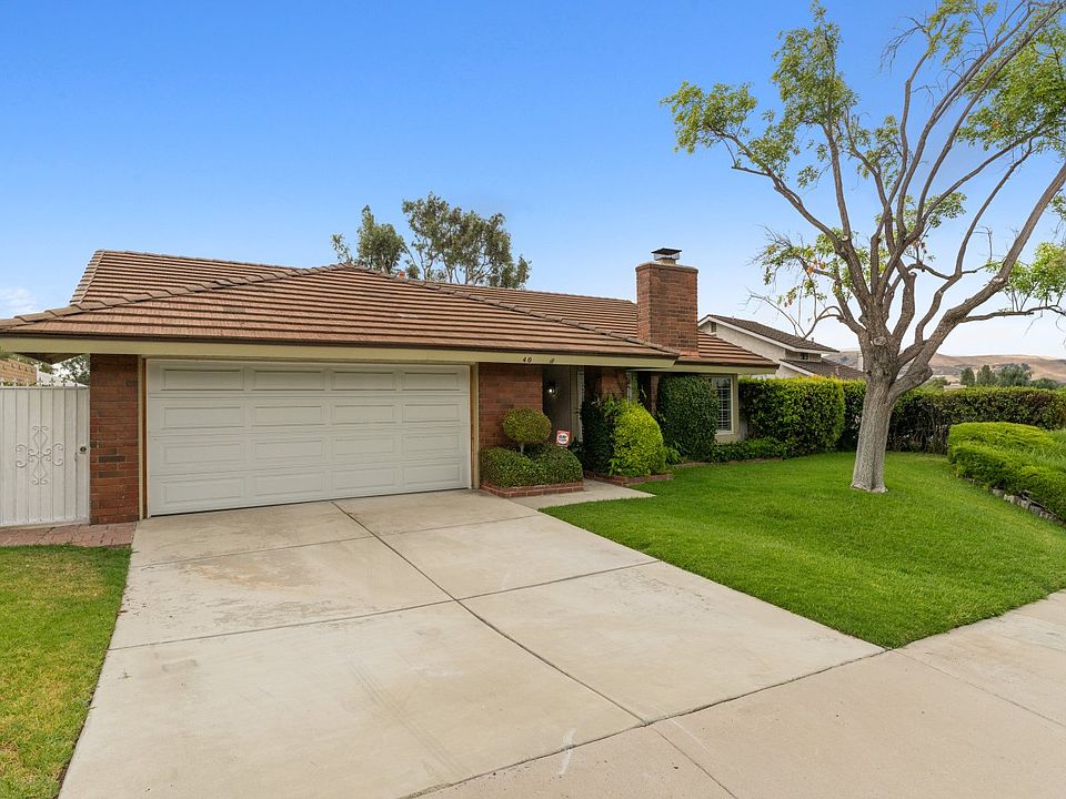 Nestled on a quiet street, in the hills of Pomona, sits a 1558 sqft, 3-bedroom, 2-bathroom, single family charmer ready for the next buyer to bring in their 21st century spark. A neatly manicured lawn and a paved walkway leads to the front of a beautiful, landscaped home. Welcome to an open and airy space. Upon front of entry is a large family room with glossy white tile flooring and an easy flow to the fully equipped kitchen. White tile countertops and white appliances complements well and enhances the mahogany tone of the cabinetry. Upon right of entry is a step-down living room with carpet flooring and a fireplace, giving the whole space a cozy ambience. Venture to the hallway that connects a bathroom with 3 bedrooms that feature carpet flooring and built-in closets. A primary at the end of the hallway with a floor to ceiling mirror closet and an en suite bathroom that has direct access to the fully covered patio backyard. The house includes direct access to a two-car garage that includes a laundry/dryer hookup. A large pool/spa in the backyard to indulge during the hot summer days of So Cal.