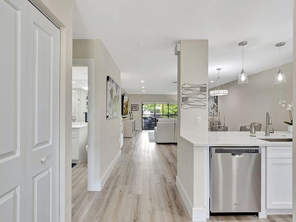 This lovely 2 bedroom 2 bath condo is just what you are looking for. Meticulously updated. Open concept kitchen with stainless steel appliances and quartz countertops. Both baths have been tastefully upgraded in the latest style. Neutral LVP flooring runs throughout the home. Relax or entertain on the private screened-in lanai overlooking a lovely lake. Plantation shutters grace all the bedroom and kitchen windows Come and make this home your own Hunters Run is a mandatory buy-in and yearly membership, amenities-filled community, offering 3 championship 18-hole golf courses, tennis & pickle ball courts, 7 dining venues, pools, a fitness center, spa & salon, golf shop, entertainment & activities. Just minutes to vibrant downtown Delray and the BEACH!