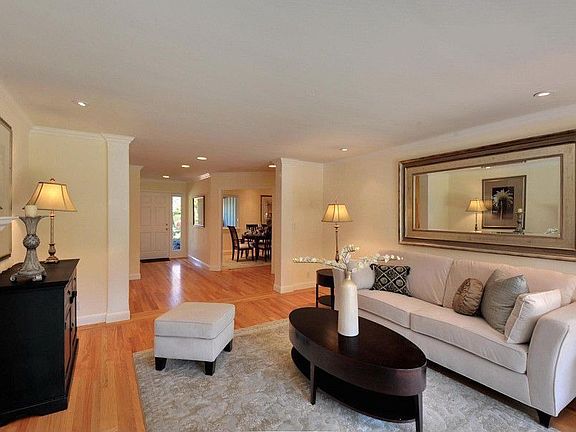 Welcome to a beautiful home with an exquisite setting located on a quiet street in a highly sought-after North Los Altos neighborhood. This exceptional 4 bedroom, 2.5 bathroom property boasts 2,607 +/- square feet of living space situated on a 10,615 +/- square foot lot. Meticulously crafted outside with perfectly selected interior finishes, the result is stylishly elegant yet eminently livable. Enjoy the well-designed gourmet cooks kitchen with high-end appliances including a 4-burner gas range with a Thermador vent-a-hood, Bosch dishwasher, Amana refrigerator, Dacor oven, GE microwave, and all of the modern conveniences including an island with granite countertops and a breakfast bar and abundant cabinetry. To complete the ambiance of the kitchen are vaulted ceilings with recessed lighting and a skylight, gleaming hardwood floors, an appliance center and ample cabinetry. Spacious and light-filled family room with sliding-glass doors leading to the rear grounds, plantation shutters, a wood-burning, brick-faced fireplace with a decorative wooden mantle, built-in shelving and entertainment center, a dining area with a picture window overlooking the side yard, surround-sound speakers, handsome hardwood floors, and a chandelier. Separate living room featuring a fireplace with marble tile hearth and surround and a designer mantle, crown moulding, recessed lighting, and lovely French doors with sidelights leading to the peaceful backyard. Elegant dining room with immaculate hardwood floors, baseboards, recessed lighting, an archway peering into the living room, crown moulding, and windows overlooking the front yard. Romantic master suite with French doors leading to the well-manicured rear grounds, hardwood floors, baseboards, and recessed lighting. Master bath with marble countertops, floor-to-ceiling tile shower surround with mosaic floors and a designer, mosaic tile strip, abundant, soft-close cabinetry, recessed lighting, tile floors, and an organized, walk-in closet. Second bedroom with hardwood floors, baseboards, windows overlooking the side yard, and an organized closet. Third bedroom featuring windows with plantation shutters overlooking the front yard, hardwood floors, baseboards, and an organized closet. Fourth bedroom with a decorative chair rail, hardwood floors, baseboards, and windows with plantation shutters. Guest bath with two sink with high-end Moen fixtures, Corian countertops, tile floors, floor-to-ceiling tile shower surround over tub, windows peering into the side yard, and abundant cabinetry. Escape to the outdoors in the serene rear grounds with an array of colorful plants, vast stretches of lawn, a Dynamic Cooking Systems built-in barbecue with brick countertops, a partially-covered brick patio, perfect for entertaining, and a perimeter of trees for privacy. Inviting front yard with well-manicured landscaping, a lush lawn area, a meandering, brick walkway, and a covered porch area with a swing. Laundry area with vaulted ceilings, built-in shelving, recessed lighting, hardwood floors, and ample cabinetry. 2-car garage with a wall of cabinetry and race deck flooring. Convenient to Los Altos Schools: Almond Elementary, Egan Middle, and Los Altos High.