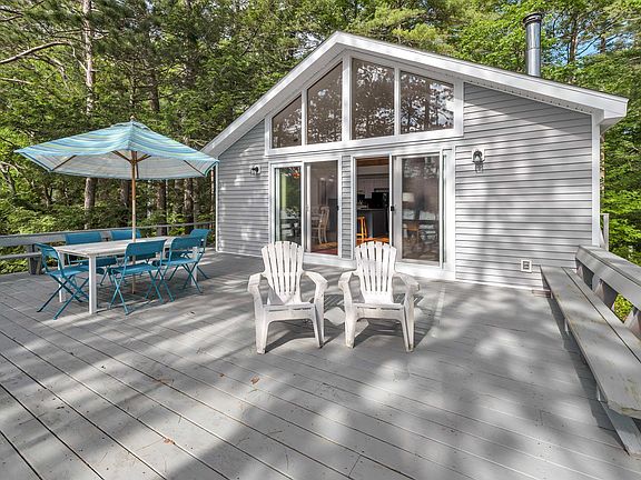 This wonderful Treasure Island property has 190' of shoreline on its own private peninsula, westerly exposure, 50+ feet of deep water docks, a protective breakwater, and is conveniently located close to the mainland. The well maintained 2 bedroom, 1 bathroom ranch, with an open concept floorplan has large sliding glass doors opening up to an oversized deck to enjoy indoor/outdoor summer living. There is a wood stove to extend the season and a washer/dryer hookup available for added convenience. The property is pleasantly wooded with a shed/bunkhouse in back. The roof and vinyl siding are new, providing for low maintenance island living. A 28' slip at Minge Cove Marina is available and will be sold separately with its own deed.
