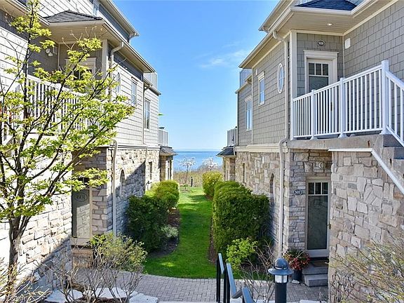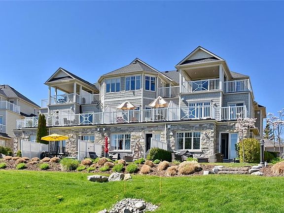 Prestigious Admirals Gate Waterfront Condo! Relax on your spacious private balconies overlooking the pool and enjoy spectacular views of Georgian Bay. This luxury end unit offers a bright open main floor with views of the bay and escarpment. Perfect for entertaining with a wet bar, large island, granite counters, plenty of cupboard space and high end appliances. Natural gas fireplace in the living room and walk out from the dining room to the balcony. Main floor master bedroom features 4 closets and a 4-piece ensuite. Upper level has 2 bedrooms with walkouts and ensuites. Unit comes with a detached garage, one reserved surface parking space and visitor parking. Don't miss this rare opportunity to own a piece of paradise in one of Canada's most sought after destinations!