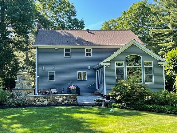 Beautiful, very well-maintained home on 1.47 peaceful acres where nature abounds. Enjoy the spacious lawn area off the bluestone patio/sitting wall with outdoor fireplace-professional landscaping in an awesome neighborhood. About as much privacy as you can get in a neighborhood setting - a great place to play or relax! Hardwood floors throughout most of the living area. Stunning built-ins in the family room includes easy to operate gas fireplace with views of the nature that surrounds - just steps off the open layout breakfast area and kitchen with granite tops, new stainless range and microwave with convection. Perfect 1st floor office location. Enjoy the warmth of the wood burning fireplace in the dining room. The king-sized main bedroom with vaulted ceiling has ample space w/ensuite bath with glass enclosed shower and marble top vanity. Exterior painted last year, many interior rooms received a fresh coat of paint - even includes a tool shed. Act now