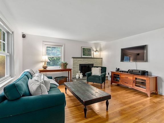 Charming 1930's expanded Cape sitting on over 1/2 acre of land on one of Wellesley's most peaceful streets. The versatile 1st floor features an open concept kitchen w/family room/eat in kitchen area. The kitchen has an island w/seating, dbl ovens, 5 burner gas cooktop, dry bar & desk area and opens to bright & sunny room w/vaulted ceiling & exterior access. Off kitchen is also formal DR, LR w/FP & home office w/closet (can also be 4th BR). A full BA is next to the office. The 2nd floor has 3 BRs and a full BA. Hardwood floors throughout the entire first & second floors. There is great space above the attached 2 car garage that can be easily finished or used as storage. Enjoy meals on the patio as well as the beautiful gardens & perennials that have been meticulously curated & cared for over the years. Hardy School.