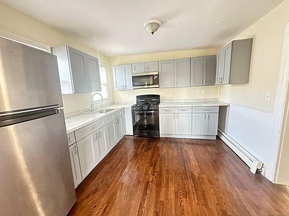 3rd floor of large 3 family home with 1583 sq ft of living space, Newer modern kitchen and appliances, laminate wood like floors, 4 bedrooms plus office/den, kitchen includes gas range, microwave and refrigerator, washer & dryer hookup in apartment, large dining room and living room. Street parking only. Immediate occupancy available. Application and credit check required. Applicants with prior evictions or criminal record will not be considered. A small dog or cat depending on breed may be considered with application.