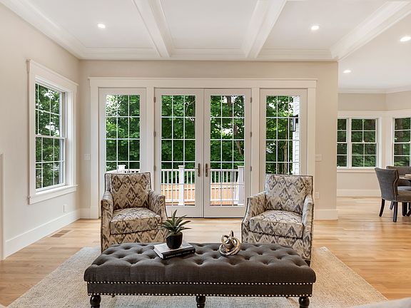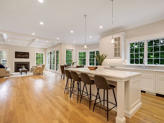 Stunning new construction Colonial built by local custom home builders. This home is situated on a quiet cul-de-sac and conveniently located in the neighborhood of Newton Center. There is much to be impressed about in this home including the clean craftsman finishes, oversized doors and windows, coffered ceilings, covered farmers porch, and more. The focal point of the home is the open concept gourmet kitchen with high-end stainless steel appliances and quartz countertops. The center island transitions into a breakfast nook with a large bay window and a spacious family room complete with a gas fireplace. French doors open up to a deck leading out to a patio and backyard. The master suite features a massive walk-in closet and spa-like marble bathroom featuring a double vanity, heated floors, oversized shower, and relaxing soaking tub. This home is equipped with a security system and electric vehicle charging capabilities. Walking distance to Oak Hill/Brown and Newton South High School.