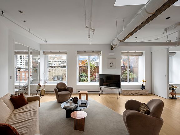 Penthouse B at 40 West 15th Street is an architecturally significant, published loft known within design circles for its sculptural quietude, material depth, and refined spatial choreography.