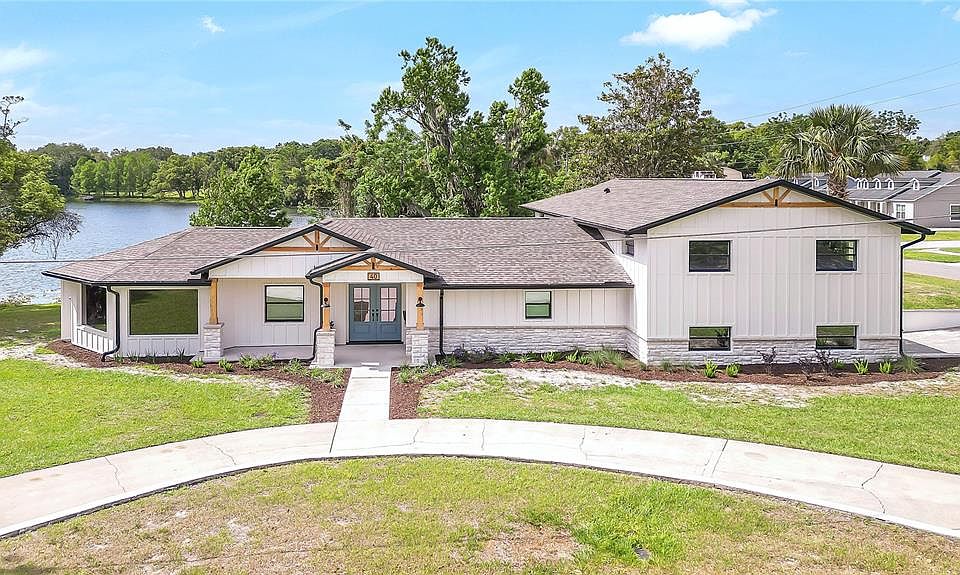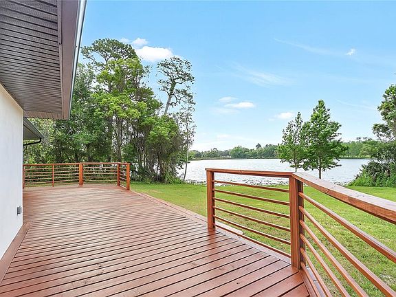 One or more photo(s) has been virtually staged. Don’t miss your opportunity to own this stunning lakefront home in the beautiful city of Apopka. This fully renovated 5-bedroom, 4-bathroom residence perfectly blends modern luxury with serene lake views. Step inside to discover an open-concept design highlighted by tongue-and-groove ceilings, custom cabinetry, and quartz countertops. The spacious kitchen features an oversized waterfall island and a convenient butler’s pantry, offering both style and functionality. New luxury vinyl flooring flows throughout, complementing the home’s high-end finishes and creating a warm, inviting atmosphere. Enjoy cozy evenings by one of the two electric fireplaces—located in the family room and primary bedroom. Designed for everyday convenience, the home includes two laundry rooms, a large deck for outdoor entertaining, and a two-car garage with a sleek new epoxy floor. Major upgrades include a brand-new roof, dual HVAC systems with new ducting, updated insulation, a full electrical and plumbing overhaul, and a new water heater. Move-in ready and perfectly situated near shops, restaurants, and major roadways including the 429, this home offers the ideal blend of luxury, comfort, and location for easy access to all of Orlando’s top attractions.