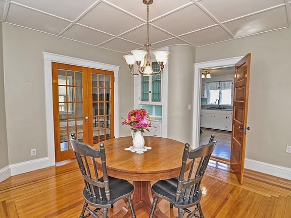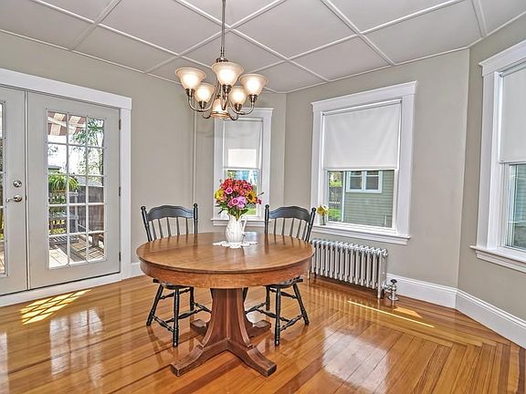 BACK ON THE MARKET - Buyers financing fell through. This home is located in the Town Park area and is loaded with character and large sunny windows. The Dining Room is spacious and offers a built in china cabinet & french doors. The Living Room has French Doors and an embossed curved wall and nicely detailed ceiling molding. The Kitchen is sunny and bright with white cabinets. On the 2nd floor you will find 3 spacious Bedrooms, an Office with access to the walk up attic for storage as well as a remodeled Bathroom. You will enjoy the deck with its shade awning overlooking the backyard and the front porch that invites you to sit and relax. The level yard has a storage shed, raised bed gardens and perennial plants that flower throughout the year. The wood floors throughout have been refinished and the home has been nicely updated including fresh interior paint with neutral colors, a newer electric panel, hot water heater, replacement windows and decking & railings on the front porch.
