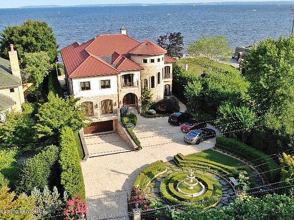 LOCATED ON THE GILDED COAST OF STATEN ISLAND, THIS BEACHFRONT MEDTITERRANEAN VILLA BOASTS OVER 11,400 SQ FT OF CLASSIC EUROPEAN ARCHITECTURE. NESTLED AT THE END OF A QUIET STREET, YOU WILL FIND THIS STUNNING HAVEN WITH A GATED ENTRYWAY, A LUDOWICI CLAY TILE ROOF AND SERENE WATER FOUNTAIN WITH SURROUNDING GARDENS. IT FEATURES AN ELEVATOR, A 20-FOOT FOYER WITH MAHOGANY CIRCULAR STAIRCASE, MAGNIFICENT SCHOENBECK CRYSTAL CHANDELIERS, TRAY CEILINGS THROUGHOUT, EXTRAVAGANT GOURMET KITCHEN AND AN ABUNDANCE OF LUXURIOUS AMENITIES. WHEN YOU ENTER THE MAHOGANY WROUGHT IRON DOUBLE DOORS LEADING INTO THE SOARING CEILING FOYER, RADIANT HEAT FLOWS THROUGH OUT THE ENTIRE HOME FROM THE VALENTINO PORCELAIN TILES TO THE BRAZILIAN CHERRY WOOD FLOORS. AS YOU PHASE INTO THE FORMAL BANQUET SIZED DINING