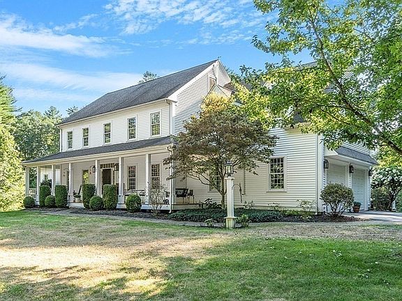 Picturesque privacy - New England Farmhouse style property with charming farmer's porch and bucolic grounds. Designed for both ease of living & entertaining this home features an enormity of builder upgrades & top-quality construction. Replete with outbuildings including quintessential large red barn with horse stalls, utility building, shed, and mature plantings surround the home. Featuring five bedrooms, two full baths and two half baths round out a great floor-plan.The home features 33 solar panels, whole house outdoor wood burning furnace ,generator ready, walkout bsmt w/workshop & fitness rm, walkup attic, 4 stall barn w/ concrete floors, heated tack room, barn & garages have hot/cold water, 4 fenced in paddocks, xmas trees on property, 1 acre pond w/ many riding trails & easy access to Douglas State forest. Next to hiking trails & Whitins Reservoir. Great tristate location w/convienent access to rt 146 . An amazing opportunity to own this turn key property!