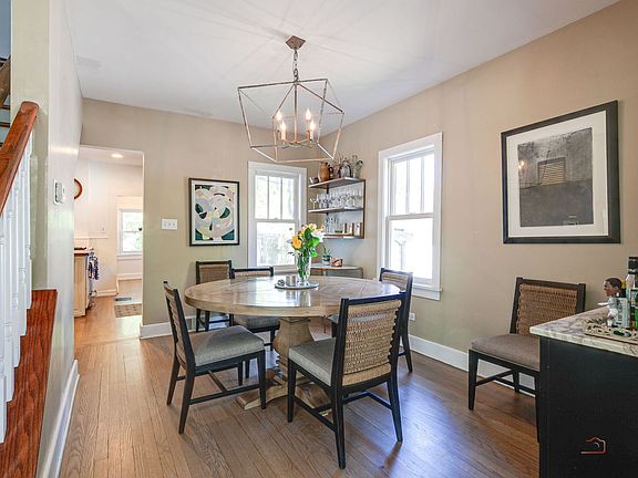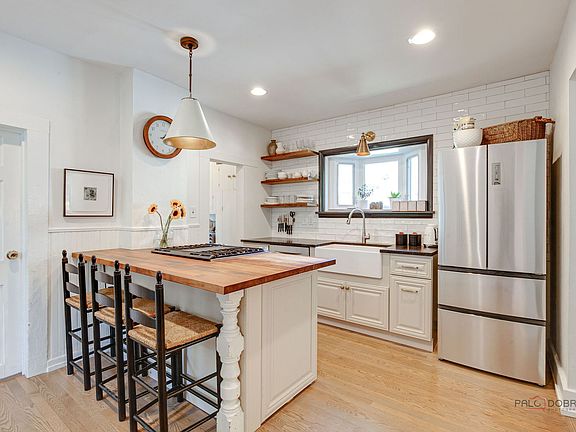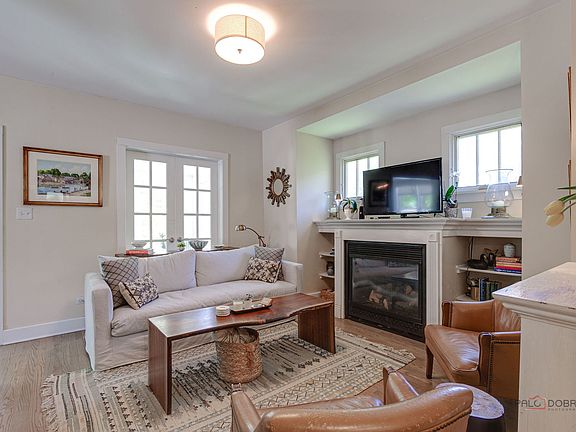 Charming Updated Farmhouse Just Steps from South Park! This thoughtfully expanded and beautifully updated home blends classic character with modern comforts. From the moment you step into the inviting enclosed front porch - framed by a wall of windows - you'll feel right at home. Inside, gorgeous hardwood floors flow throughout a light-filled layout designed for everyday living. The living room features a cozy gas fireplace, custom built-in bookshelves, and French doors that open back to the porch. A separate dining room connects to the updated eat-in kitchen, which boasts butcher block and honed granite countertops, counter seating, a deep farm sink and stainless steel appliances. A sunny enclosed back porch offers an ideal spot for a home office or creative studio. Upstairs, the private primary suite is a true retreat with a walk-in closet and a renovated en-suite bath featuring a double vanity and separate shower. Two additional bedrooms, with walk-in closets share an updated hall bath. Downstairs, the finished basement includes a versatile rec room and a full bath - great for guests or game nights. A fully fenced backyard and lush landscaping create a nature lovers paradise. All this in a fantastic location near South Park, Market Square, schools, Metra train and Lake Michigan!