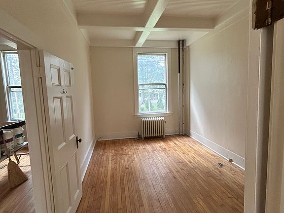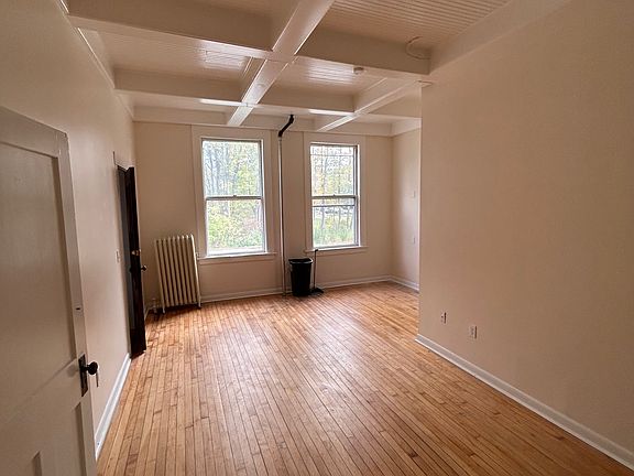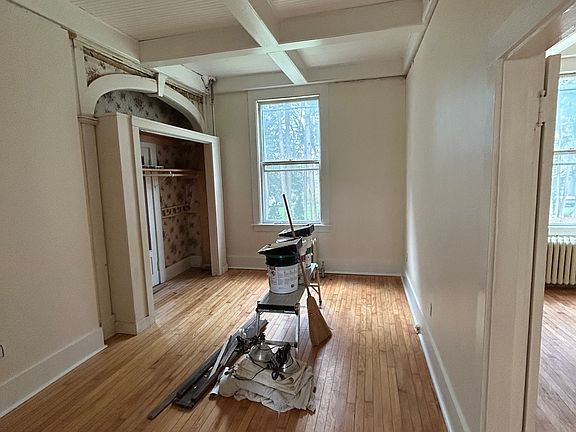 Full kitchen with storage areas and all new appliances and granite counters. New paint all around (nearly complete) with coffered ceilings and refinished maple floors. New bathroom fixtures.