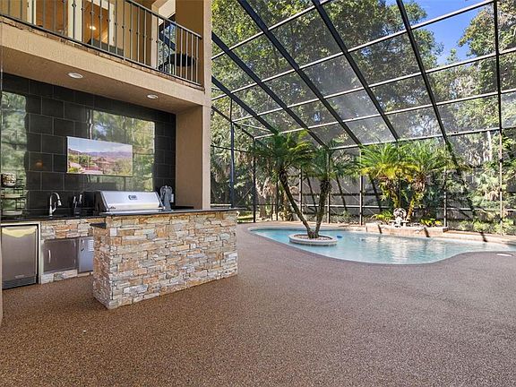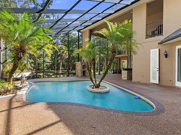 Experience luxury living in the exclusive gated community of Fairchild Oaks at 40 Whitehall Court, a stunning two-story residence offering 4 bedrooms, 5.5 bathrooms, and over 5,100 square feet of refined living space. Designed with elegance, functionality, and comfort in mind, this home is perfect for those seeking both sophistication and serenity. Step inside to find travertine flooring, high ceilings, and crown molding throughout the main living areas. The formal living room features a floor-to-ceiling window alcove and an electric fireplace, creating a grand yet welcoming atmosphere. The formal dining room sits conveniently off the gourmet kitchen, which boasts quartz countertops, two sinks, a GE Monogram refrigerator and dishwasher, a built-in oven, and a cooktop—a chef’s dream. The breakfast nook with a built-in bench provides a cozy spot to enjoy your morning coffee. Step through French doors to your private screened-in outdoor retreat, complete with an outdoor kitchen, full bath, gas fireplace, saltwater pool, and heated spa—perfect for entertaining or relaxing year-round. The first-floor primary suite offers a luxurious escape with tray ceilings, a soaking tub, a separate walk-in shower, dual sinks, and a spacious walk-in closet. Upstairs, you’ll find a large family room, three additional bedrooms (including two en-suites), and a versatile flex room ideal for a bedroom, home office, media room, or fitness studio. Four upstairs balconies provide tranquil wooded views, enhancing the home’s sense of privacy and connection to nature. Additional highlights include a laundry room with a new washer and dryer and laundry chute, and a three-car garage with epoxy floors and a paver driveway. Nestled in one of Palm Coast’s most sought-after communities, this home offers tranquility and convenience — just minutes from Flagler Beach, top-rated schools, shopping, dining, and parks. 40 Whitehall Court is more than a home — it’s a lifestyle. Experience luxury, privacy, and timeless design in this one-of-a-kind Palm Coast residence.
