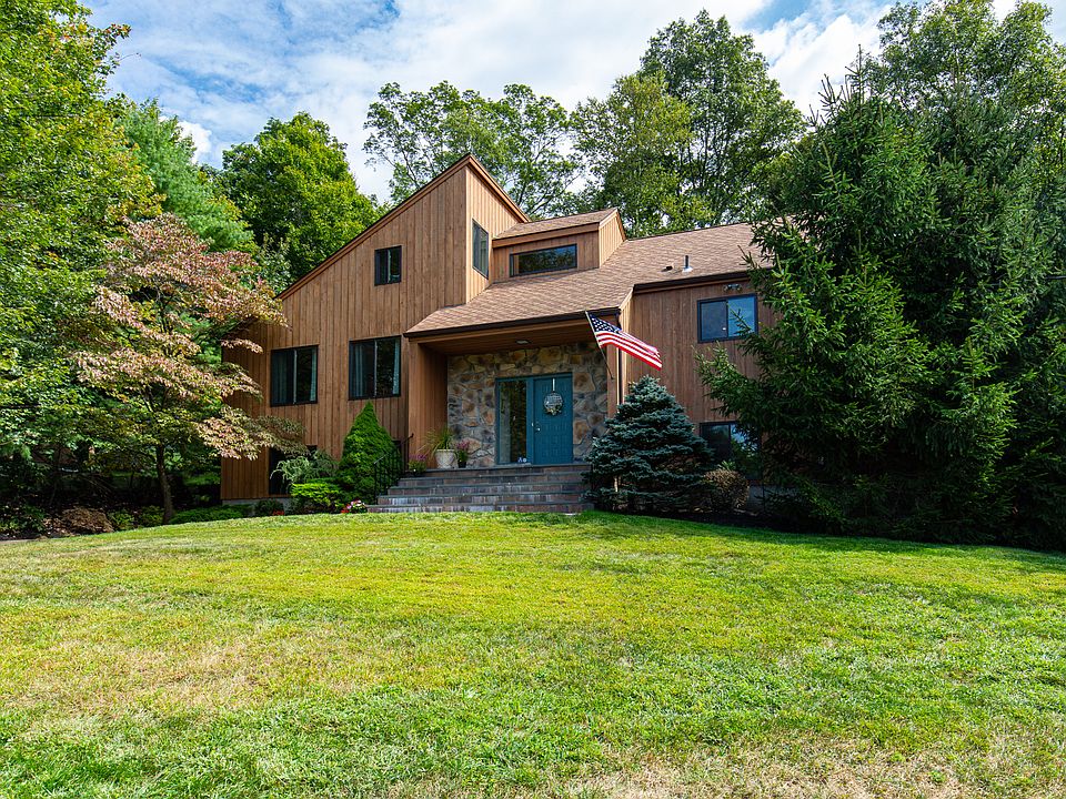 Wonderful updated four bedroom contemporary offering privacy and beautiful sunset views. The attic has been converted to a legal loft/office area. The remodeled kitchen with granite counters offers new stone flooring and all new KitchenAid appliances. Two remodeled bathrooms with granite/stone flooring. Enjoy the large deck (built in 2015) or relax on the second entertaining patio area. In addition, upgrades include new front walkway, cedar siding, roof, low E Marvin windows, boiler, partial house automatic propane generator, which runs refrigerator, stove, boiler, water, well and kitchen outlets. Fireplace was refaced. Great storage space. Equidistant to all four Somers schools. Desirable family Somers neighborhood - great for walking.