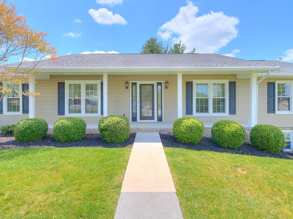 Well-maintained 3BR/3BA ranch in Christiansburg's Windmill Hills subdivision. Main level offers spacious living room, dining room (currently office), oversized eat-in kitchen with large island and gas log fireplace, and access to balcony deck overlooking the large fenced-in yard. Other main level features include full hall bath with skylight and three bedrooms, including an owner's suite with large closet and full ensuite bath. The walk-out lower level includes a large family room perfect for a home theater + fitness area, two additional finished rooms, full bath with laundry closet and an oversized 2-car garage. Exterior amenities include beautiful landscaping, covered front porch, patio, fenced-in yard, large deck, storage shed and firepit area. Great Christiansburg location close to the rec center, Huckleberry Trail, shopping and with easy access to Rt. 460! Recent updates include water heater & HVAC within past year & new carpet in lower level.