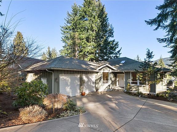 Views, Views, Views! This beautifully designed daylight rambler has it all! From it's Gate 1 location w/natural gas, lovely landscaping and Lake Whatcom & Stewart Mountain views, to the 4BRs, office, two living rooms, two dining spaces & a bonus rm, you're going to love this home. Enjoy main level living featuring a huge primary suite w/private deck, walk-in closet & large bath w/separate shower & jetted tub. Plus, oversized picture windows in the living rm frame the lake & mtn views and bring in great natural light. Enjoy area amenities including an 18-hole Championship golf course, marina on the lake (walking distance from the house), 24/7 Security, dog park, hiking/walking trails, tennis/basketball courts, swimming pool, beaches & more!