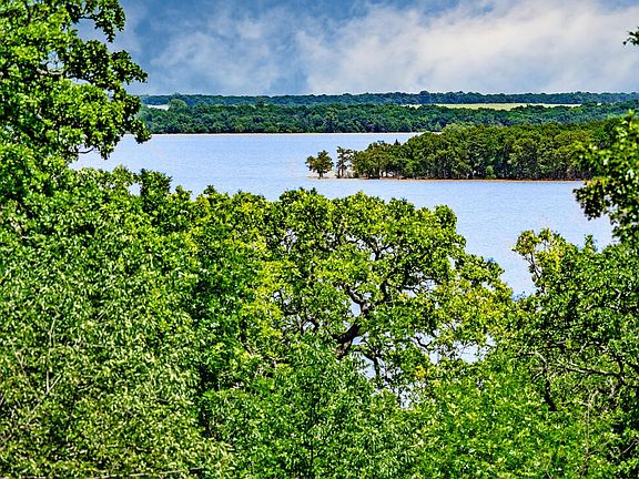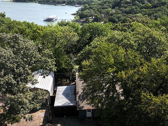 Almost 1 + or - acre of lake front, lake view... Spectacular lake front home site... Property is zoned for future dock access pending Corp of Engineer license approval... Property line extends to 626' elevation... benefit is that you can trim the trees on your property that might block your lake view in the future... Gradual slope and privative gated road to the lake... Cabin has enjoyed a light remodel in 2022 with Central Heat and Air added and Large Capacity Septic Installed, and 2023 All Windows Replaced with high efficiency dual pane... Great screened porch overlooking open deck... both with lake view... Modern bathroom... Private primary room... Plus separate bunkroom... large storage or shop with unfinished interior (including window unit) could also be used as a guest house, perfect to enjoy Lake Texoma... Carport could also serve to store your boat... Cabin comes fully furnished and ready to enjoy. Located 1.9 + or - miles from Millcreek Marina and 10 miles + or - from Tanglewood Resort and Highport Marina.