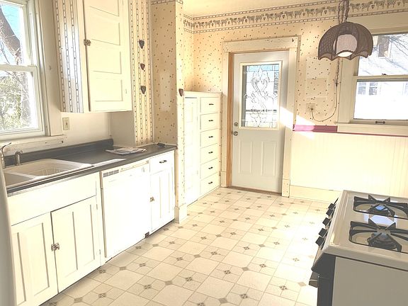 1 year Home Warranty Included and priced below appraisal value! Visit this charming 4 bed 1 1/2 bath home with lovely natural woodwork throughout. Located in a nice Mendota location on a large corner lot, across the street from a city park. It features an eat-in kitchen with pantry cabinet and additional drawers (appliances remain). The back door leads to the shaded rear yard and 1+ car garage. The formal dining room has a built-in corner seating area and China cabinet. There is a 1/2 bath off here. The living room is spacious. It features a cozy window seat that lifts up for storage and an additional seat with mirror, lovely woodwork, closet and leaded glass window. There is a large, heated sunny and bright front porch with built-in shelving. The second level has 3 bedrooms all with natural woodwork and hardwood floors. Each room has a closet, as well as a linen closet in the hallway. One bedroom has an exterior door great for someone to add a deck and stairs. There is also a full bath in the hall with tile flooring and linen closet. The 3rd level has a bedroom with hardwood flooring, closet and updated windows. The attic room is across the hall and is unfinished. Selling "As Is". Conventional or Cash only please.