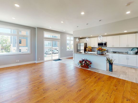 Stainless steel appliancesModern kitchenHardwood flooringCeiling fansGranite countertopsRooftop deckMarble bath flooring